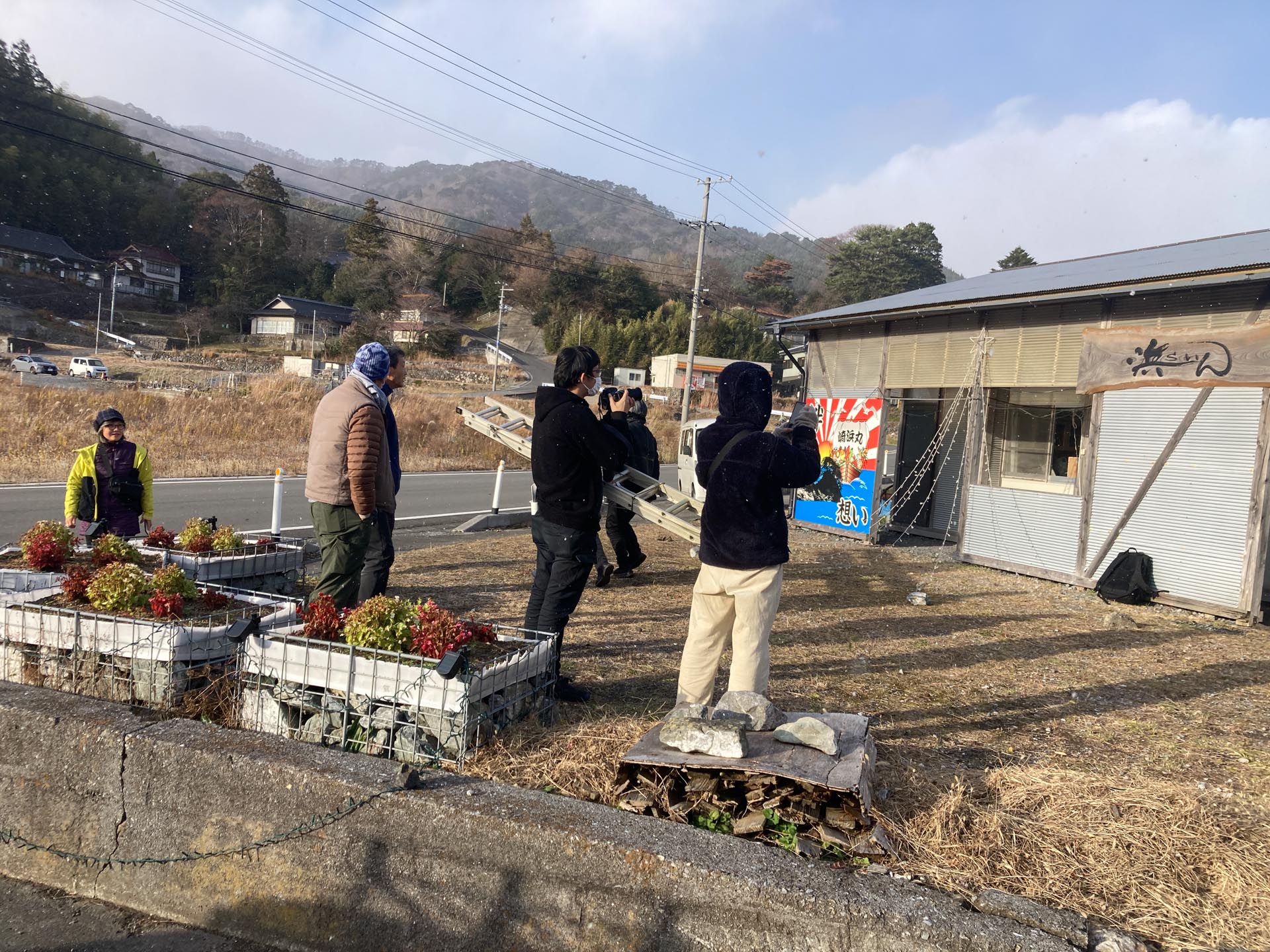 その後、公民館で美味しいお食事とお土産をいただき、小雪の舞う中、鴻池さんは浅沼さんのオープンカーに乗り颯爽と出発した後ろ姿が印象的で、忘れられませんでした。