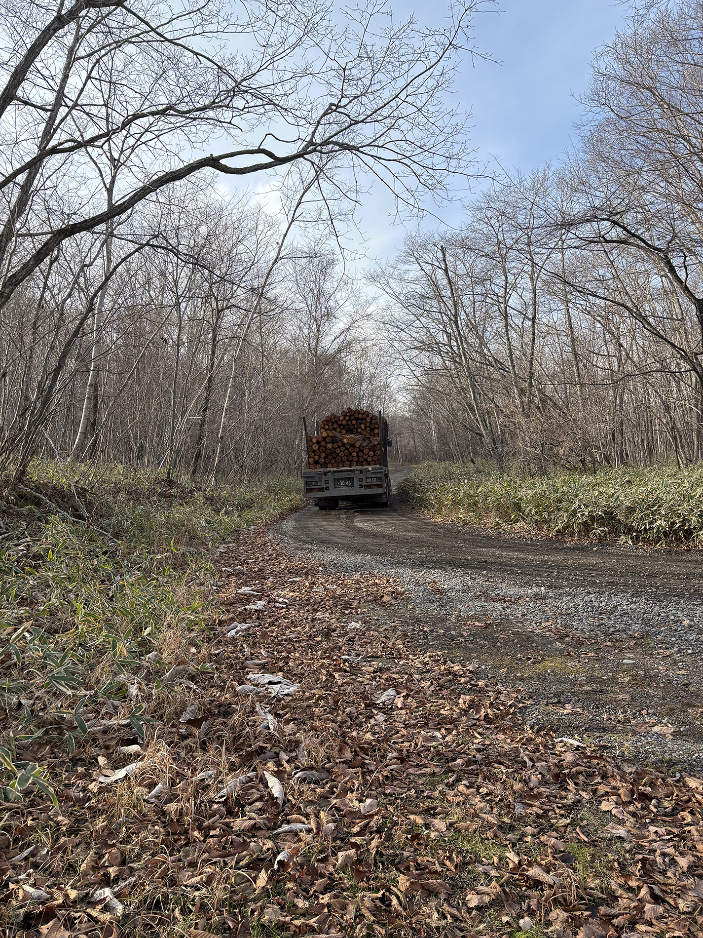 図書館に狼ベンチが置かれてから半年経った今年の5月の初旬、子どもたちは先生に頼んで狼ベンチを、校庭の真ん中にある樹齢100年を超えるエゾヤマザクラの下に連れ出し、一緒にお花見をしたそうです。狼はもう彼らの仲間の一匹のようです。北海道という乾燥した空気と平たい丘が続く地形は私の体に合い、通うごとに土地と親しくなっていくようで、これから何かありそうな予感がしてなりません。養蜂家、場搬(ばはん)の馬を飼う方、ガラクタ屋のご主人、小さな手芸店を営む女性、新しいフリースクール、墓地巡り、砂澤ビッキの中川研究林、北海道と彫刻家と木や石、近い国境、幹線道路を歩くのは私だけ、車道横の繁る草むら、開拓、など興味深い出会いが待っていそうで、ベンチもまたここから北海道を北へ北へと移動し、どこかご縁のある人と場所へとリレーされていくビジョンも見えます。作品は軽トラでも、ワンボックスでも入るサイズ。もし迎えにきてくれたら、狼ベンチを旅に連れ出すことも簡単です。そんなことを考えたりしています。