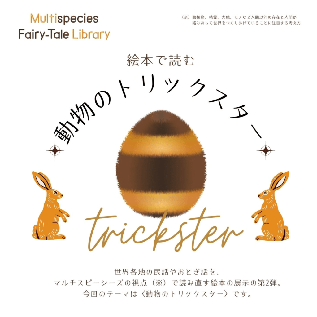 ここでは2023年に「物語るテーブルランナー」を本棚の中に展示し「湖のそばで逢いましょう」というトークを開催したことがあり、そのつながりで今回は、おとぎ話研究者の村井まや子さんが2月1日より『絵本で読む動物のトリックスター』展を開催します。(鴻池)